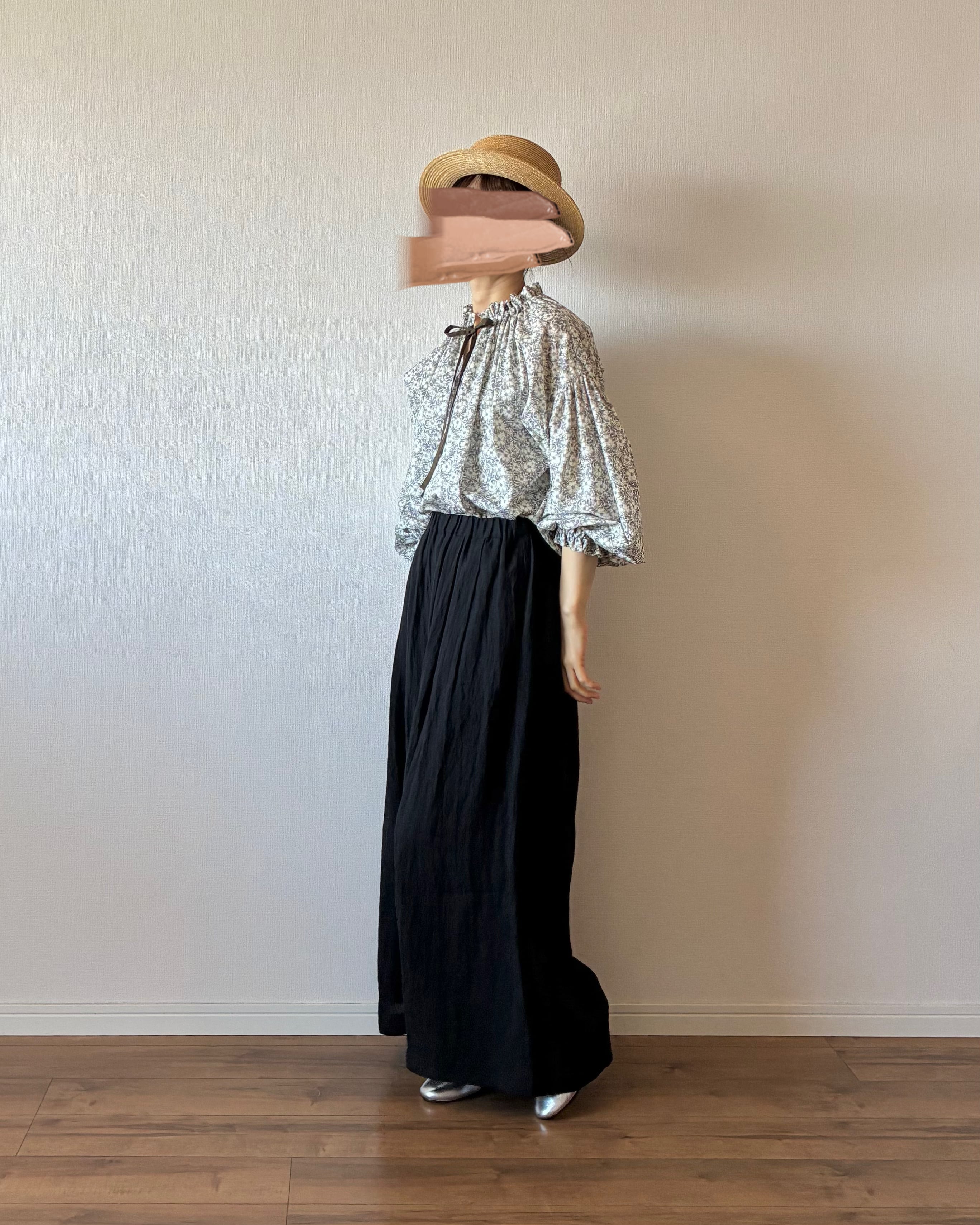 ボトムスも選ばずワイドパンツとの相性もぴったり。リバティプリント生地が特別な日からカジュアルなお出かけまで幅広く演出してくれます。